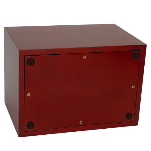 Honoring your loved one with dignity, the Custom Engraved URN for Ashes - XL combines timeless elegance with practical design. Handcrafted from premium birch wood with a rich cherry stain finish, this extra-large urn features a refined box shape with subtle beveled edges that add understated sophistication. With a 260 cubic inch capacity, it's ideal for families seeking a spacious memorial vessel. The secure screw-access bottom panel makes placement simple and respectful. Whether personalized with custom engraving or displayed as-is, this wooden urn serves as a meaningful tribute in any setting—perfect for memorial services or cherished home placement.