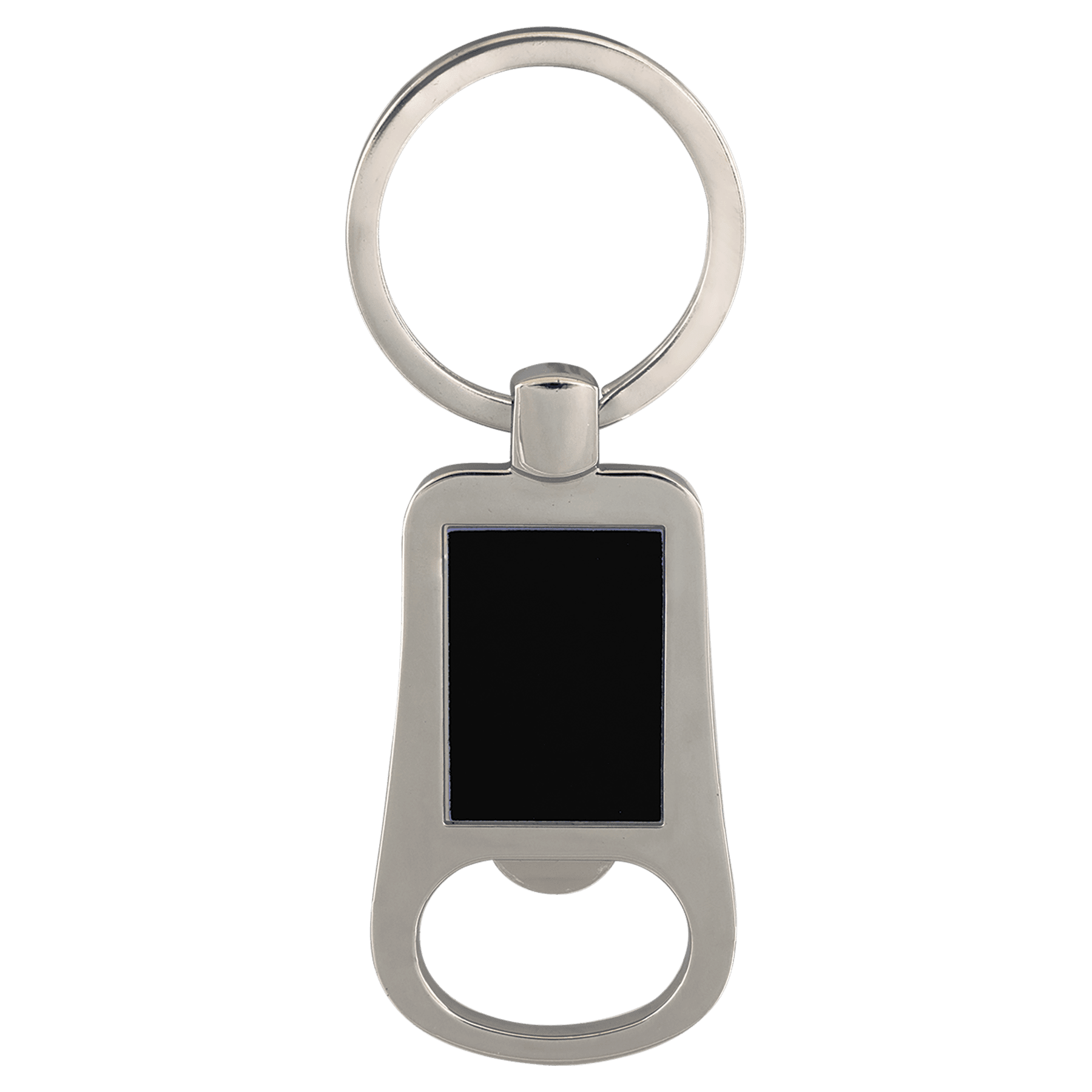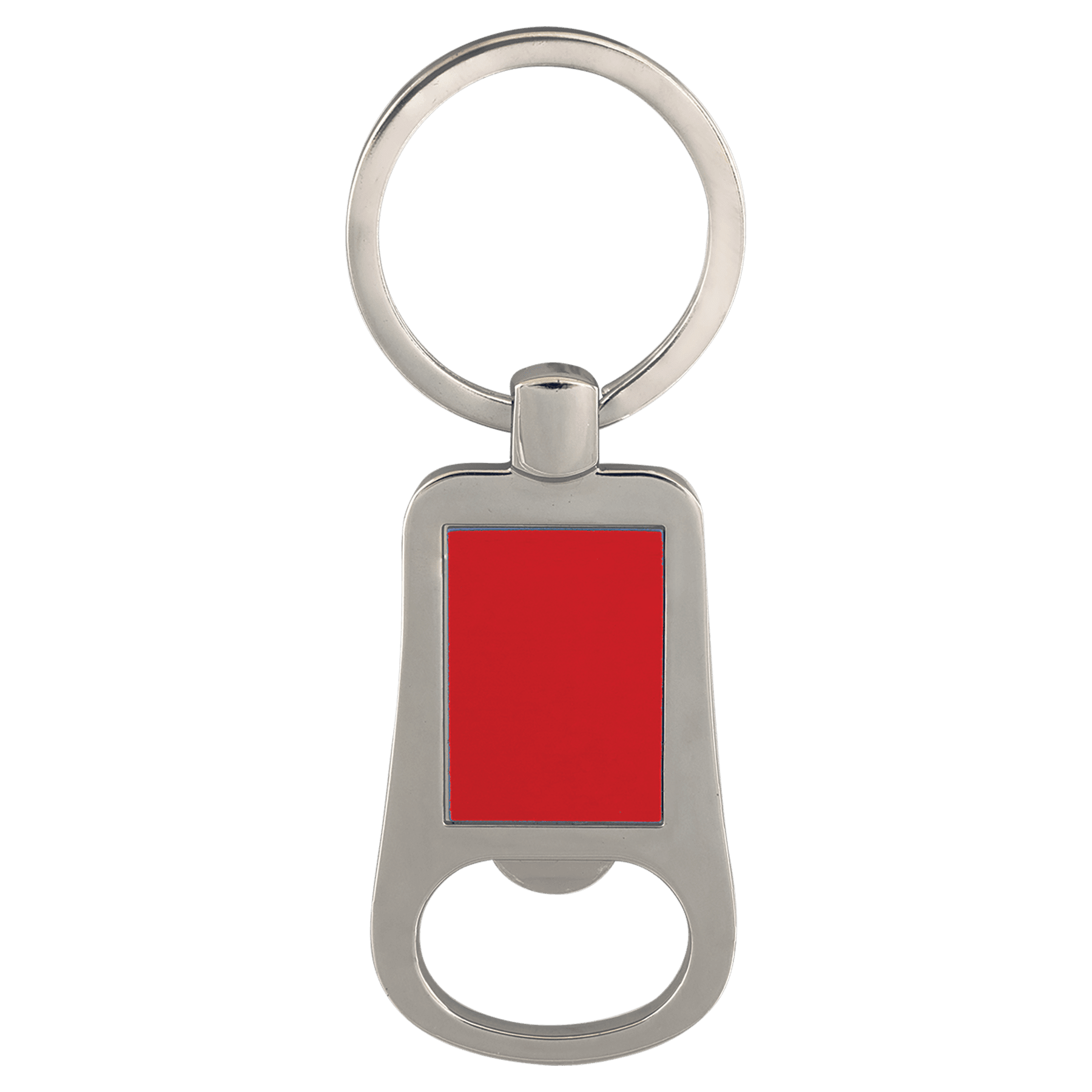 Compact and practical, this 2 1/8" bottle opener keychain combines everyday utility with personalization potential. Crafted from durable zinc alloy and anodized aluminum in silver and blue, it features a 1 3/8" key ring for easy attachment to bags or belts. The generous engraving area (3/4" x 1 1/16") is perfect for logos, names, or custom designs that sand carve to crisp white detail. An ideal promotional item or gift for businesses and events seeking memorable, functional giveaways.